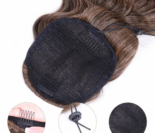 Ponytail Curls 65cm Kunsthaar Dunkel Braun Gold Blond